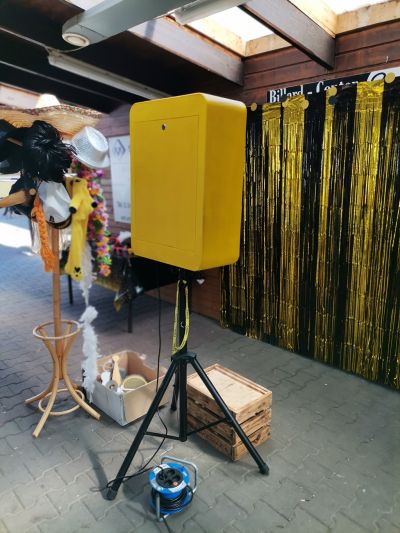 Ein Betrieb der SL-Fotobox im Freien ist grundsätzlich möglich. Bitte beachte jedoch, dass die Fotobox nicht wasserdicht ist. Bei Niesel, Regen oder generell feuchter Umgebung solltest du sie daher nicht nutzen, um Schäden an der integrierten Technik zu vermeiden.